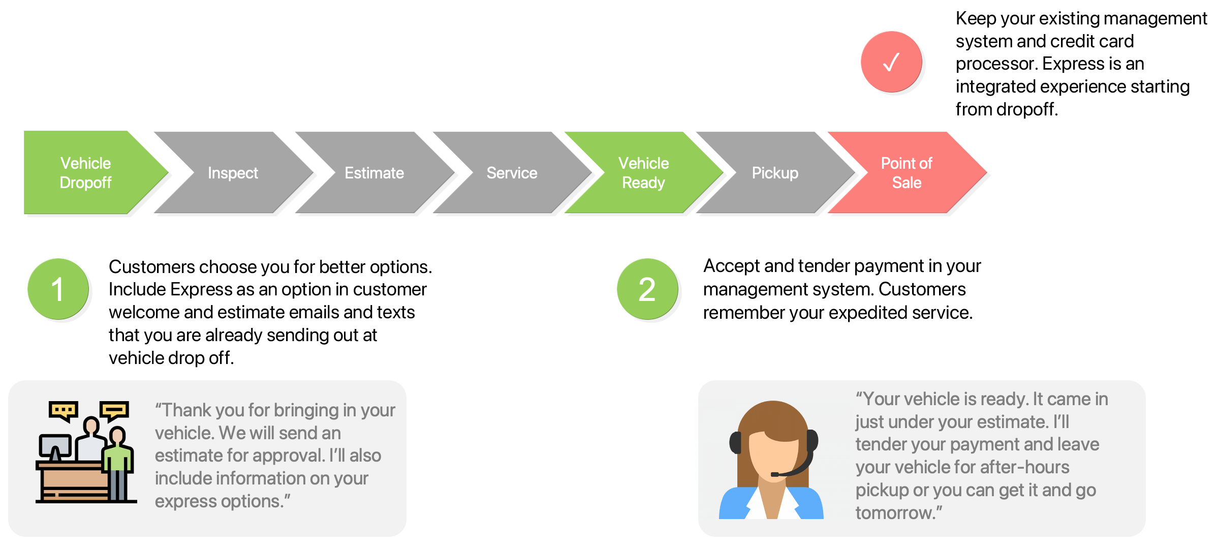 Service advisors like using Express because it fits into their existing software for workflow (DVI) and management system.